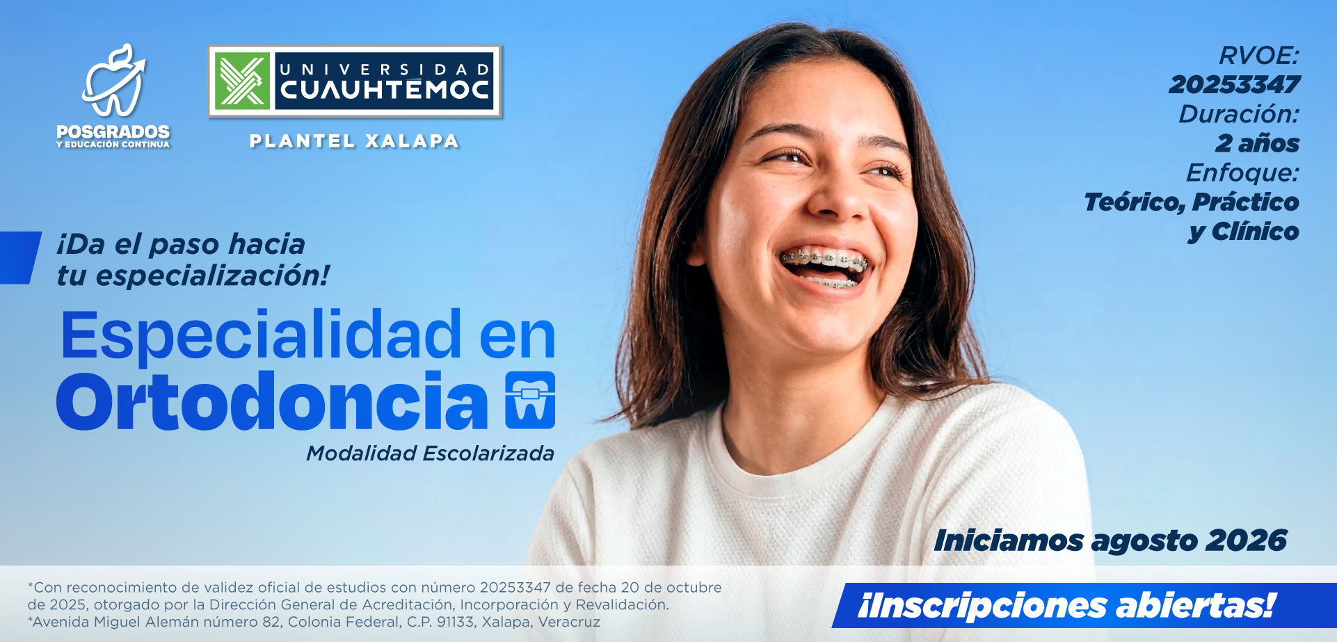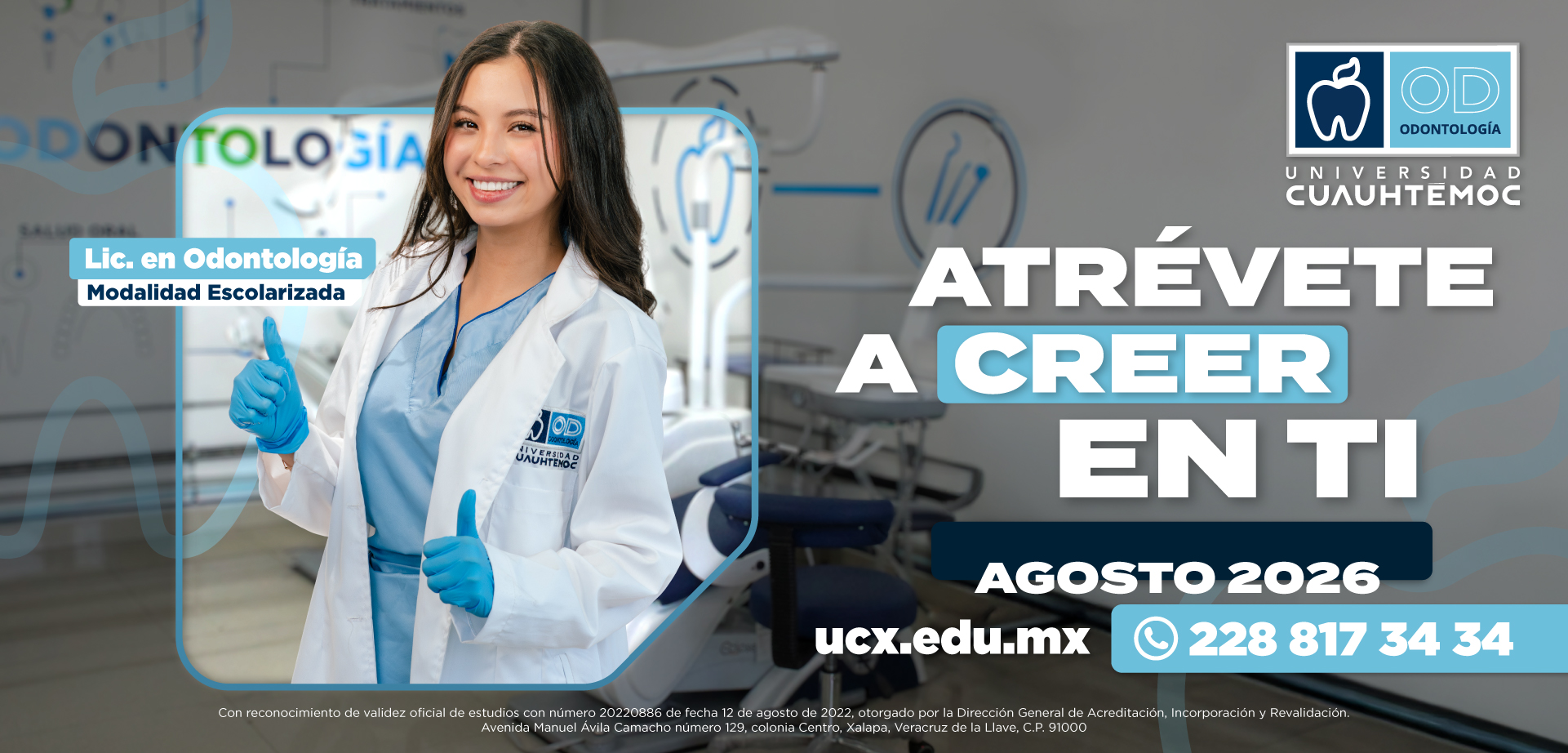 La Escuela de Odontología de la Universidad Cuauhtémoc Xalapa es una institución de educación superior  con más de 45 años de experiencia a nivel nacional y más de 10 años siendo la primera escuela privada de odontología en el estado de veracruz.